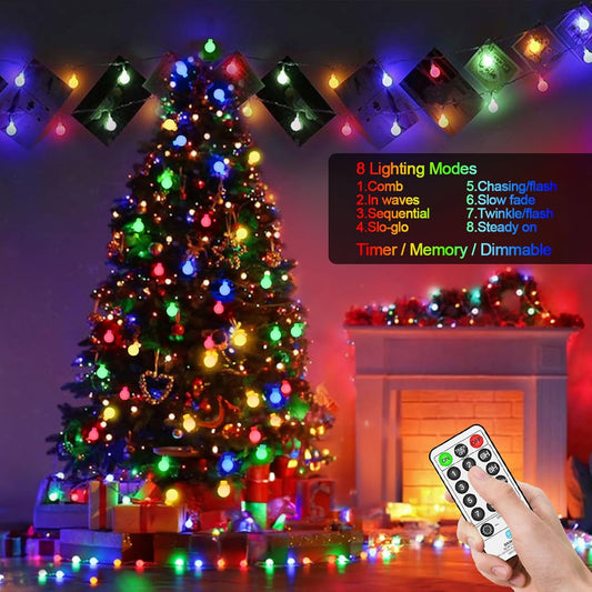 20M 200 LED Christmas Lights Outdoor Fairy Lights Plug In Globe String Lights Waterproof with Remote Timer 8 Modes for Outside Garden Tree Party Indoor Bedroom Decorations Multicolored