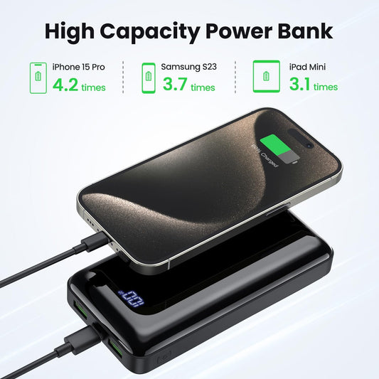20,000mAh Portable Power Bank with PD3.0 & QC4.0 – 22.5W Fast Charging USB-C Charger with LCD Display, 3 Outputs & 2 Inputs – Ideal for Smartphones and Outdoor Use