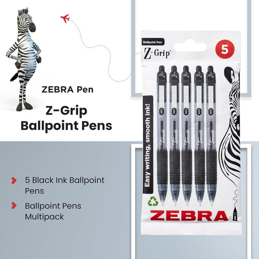 Zebra Pen Z Grip Black Ballpoint, Smooth & Comfortable Pens With Pocket Clip, Retractable Ballpoint, Reliable Black Biro Pens Multipack For Everyday Use - Black Ink, Medium Point
