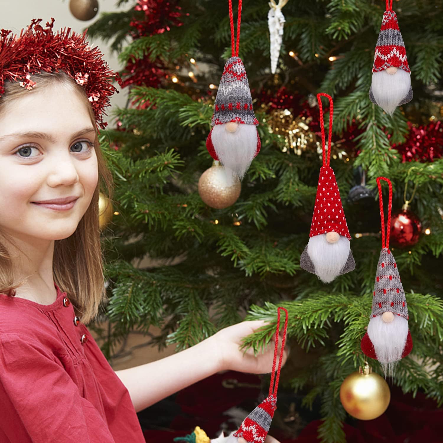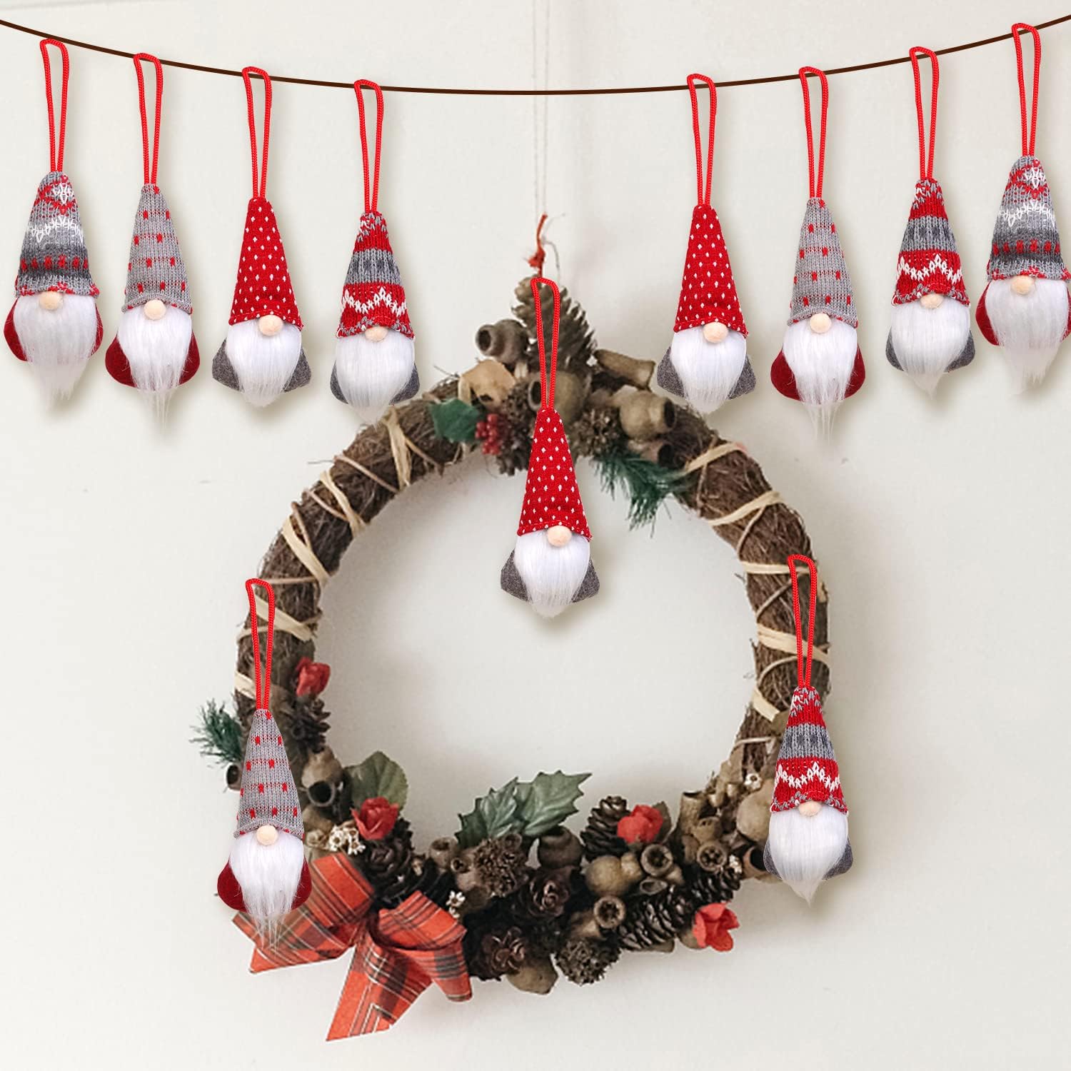 - Christmas Gnomes Hanging Ornaments Set of 8, Swedish Gnome Handmade Plush Santa Elves Christmas Tree Hanging Decorations Xmas Decorations