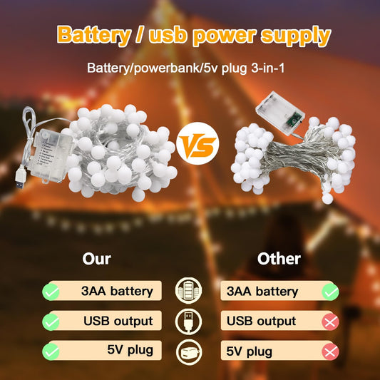 taiyongkang Globe Fairy Lights Battery Powered or USB, 12m/39ft 100 LED Warm White Ball String Lights with Remote & Timer, 8 Modes, Indoor Outdoor Bedroom Garden Camping Waterproof Fairy Lights