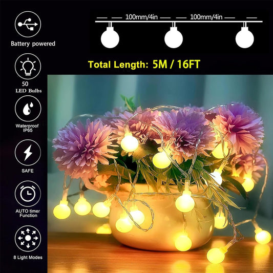 Kjzeex Globe String Lights Waterproof, 3M/10ft 20 LED Fairy Lights Plug in Powered, Perfect for Indoor and Outdoor for Garden Lights, Warm White