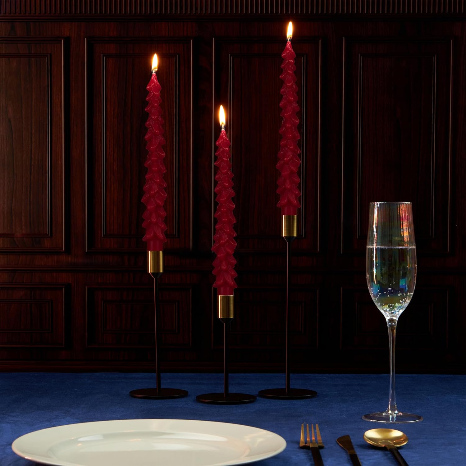 - Long-Lasting - Each of the tapered candles burns up to 7 hours, offering consistent ambience through dinners or events. Ideal as dinner candles, home decor, or as Christmas table decorations