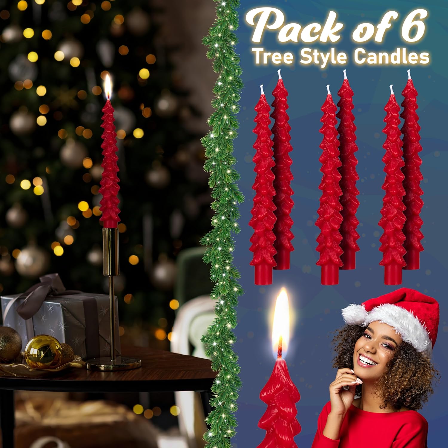 - Elegant & Festive - Transform your space with our tapered Christmas tree candles, ideal for a table centrepiece, Christmas party or fireplace mantel. The perfect Christmas decor for winter gatherings