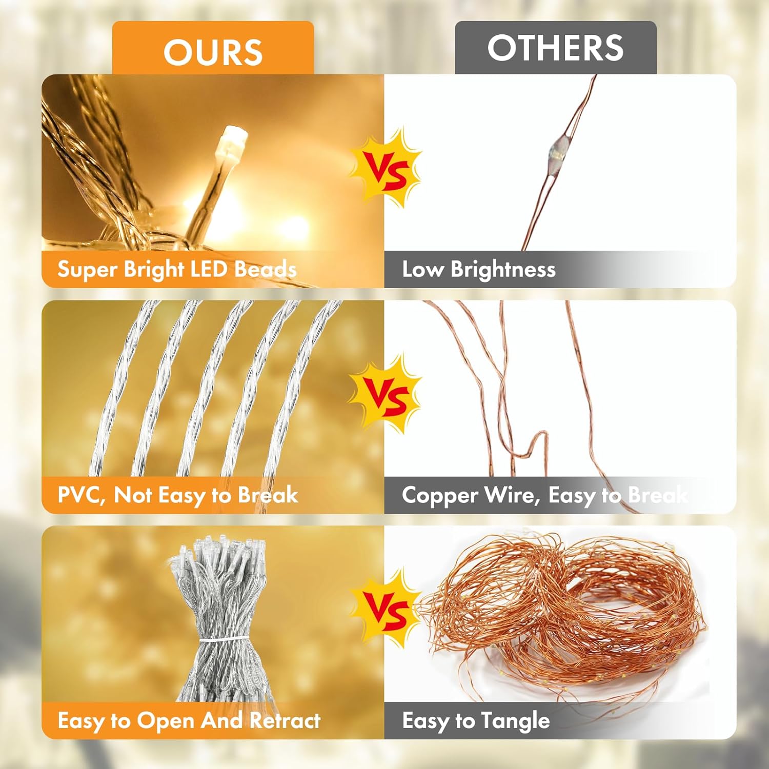 - Durable Design: Our 10m 100 LED battery operated christmas lights feature a robust plastic cover copper wire that resists breaking, making them far more reliable than traditional battery copper wire lights. This flexible design allows for extensive DIY applications, from decorating your garden to enhancing indoor spaces. Enjoy peace of mind knowing your lights can handle various creative projects