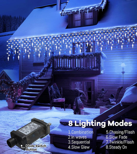 Icicle Outdoor Christmas Lights,10M/33FT 270 LED Icicle Lights with 45 Icicles,Blue White Fairy Twinkle Lights - IP44 Waterproof/Remote/8 Modes/Memory/Timer for Outside Eaves Xmas Roof Decorations