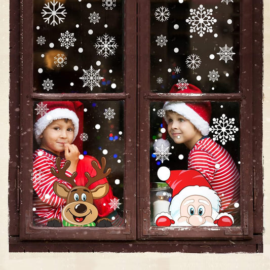 FINGOOO Christmas Window Stickers, 6 Sheets Peeping Santa and Rudolph Window Clings Snowflake Decal for Xmas Window Decoration