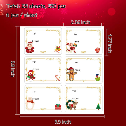 Christmas Labels Stickers,150pcs Christmas Stickers Xmas Present Gift Tags Self-Adhesive Christmas Sticky Label Tags Xmas Name Labels for Present Cards