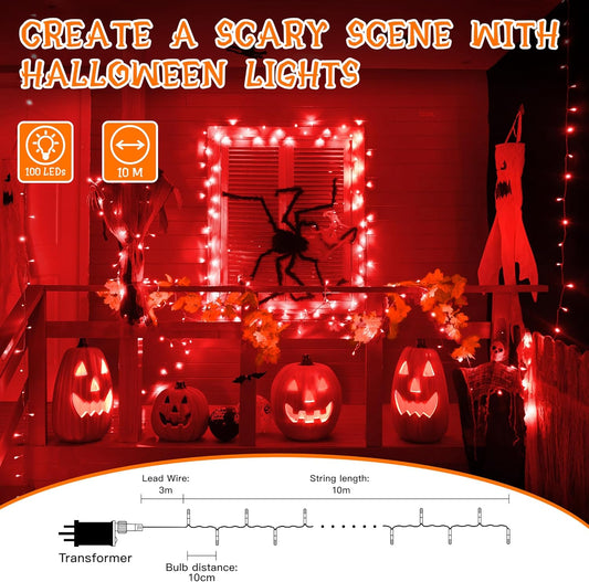 Ollny 10m 100 LED Fairy Lights Mains Powered, Outdoor Waterproof String Light with Remote/Plug/Modes/Timer, Bright Red Lighting Outside Indoor Garden Tree Decorations
