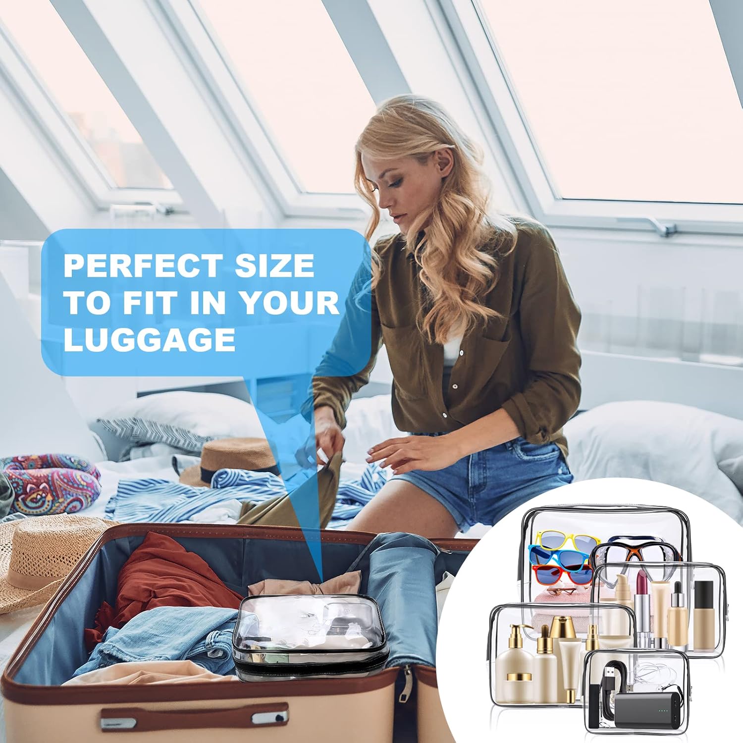 - Aucuu 4-Pack Clear Wash & Makeup Bags TSA Approved Makeup Bags, PVC Waterproof Travel Wash Bags for Family, Men, Women (Largea, Medium, Small, Minimum)
