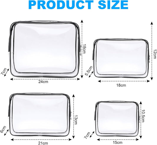 Aucuu 4-Pack Clear Wash & Makeup Bags TSA Approved Makeup Bags, PVC Waterproof Travel Wash Bags for Family, Men, Women (Largea, Medium, Small, Minimum)