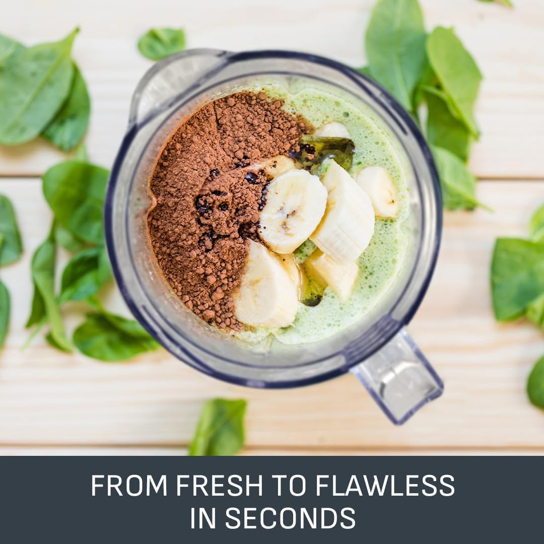 - Optimum blending: a 600W motor, four robust stainless-steel blades and a tapered jug shape combine for efficient blending without chunks, every time. It even crushes ice with ease.