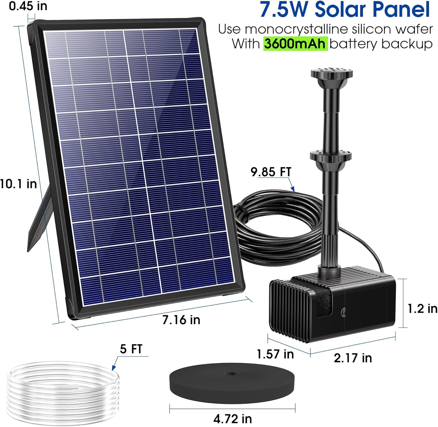 - Biling Solar Water Pump with Battery Backup, 7.5W Solar Pond Fountain with 3600mAh Battery 10 Nozzles Solar Fountain with 5ft Tubing Water Features for Garden Ponds Pool Fish Tank Waterfall