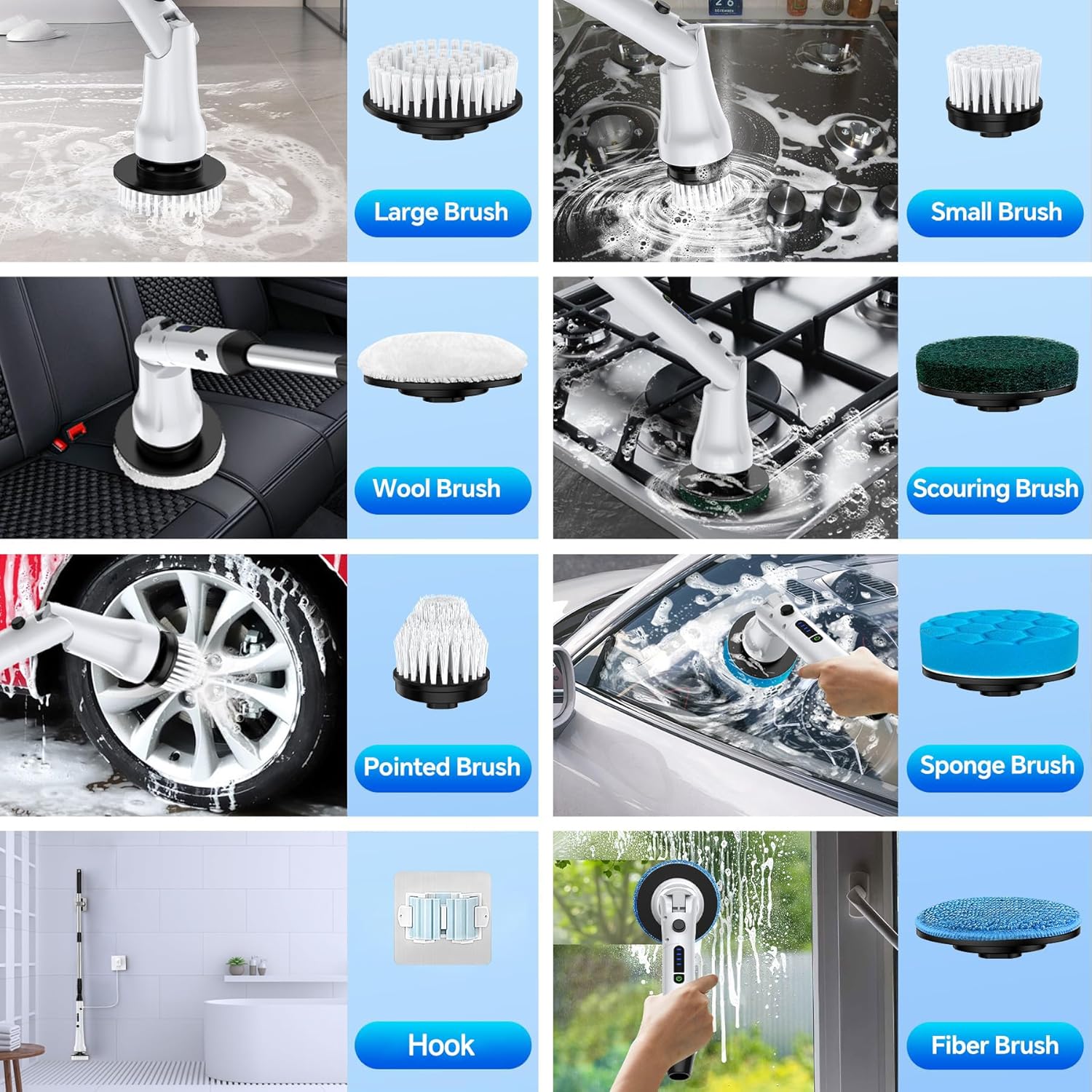 Versatile Cleaning Tool: Includes 8 interchangeable brush heads for a variety of cleaning tasks around the home.