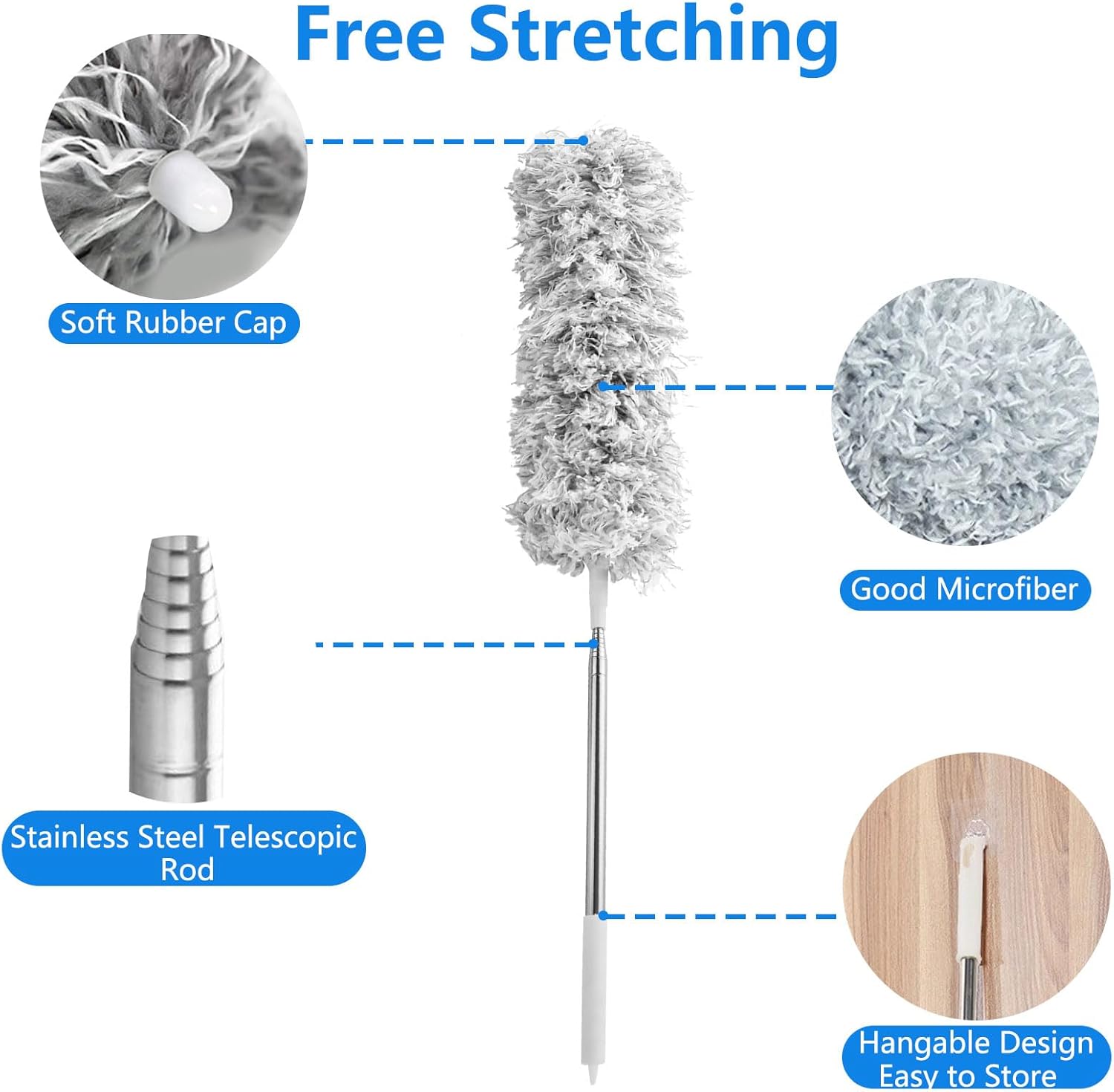 - Our telescopic duster is made of stainless steel and can be extended from 80CM to 275CM. extend the tall duster pole to the length you need. For cleaning jobs of different heights, only this household cleaning tool is enough