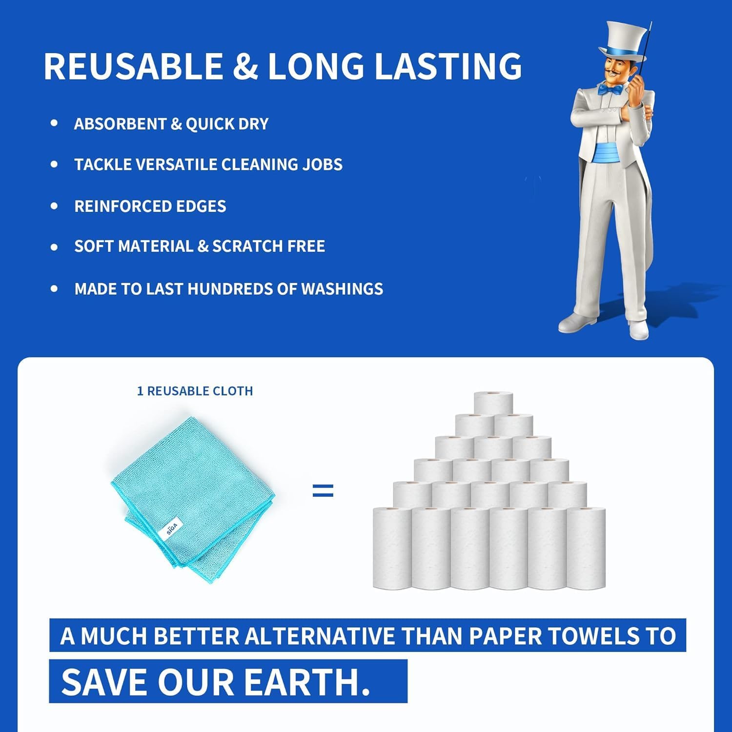 - MR.SIGA Microfibre Cleaning Cloth, Pack of 24, Size:12.6" x 12.6" (32X32CM)