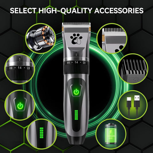 Cordless Professional Pet Clippers – 2-Speed Low Noise Grooming Kit for Dogs & Cats with Thick or Fine Hair