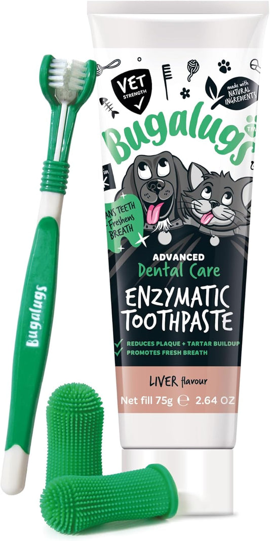 Bugalugs Dog Toothbrush and Toothpaste Kit Includes Cats & Dog Toothpaste, 2 x Finger Cat Toothbrush, 1 x Dog Toothbrush Dog Teeth Cleaning Products for Dog Plaque Remover & Dog Breath Freshener