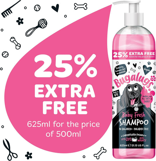 BUGALUGS Baby Fresh Dog Shampoo grooming products for smelly dogs with baby powder scent, best puppy shampoo, Vegan pet shampoo professional (625ml)