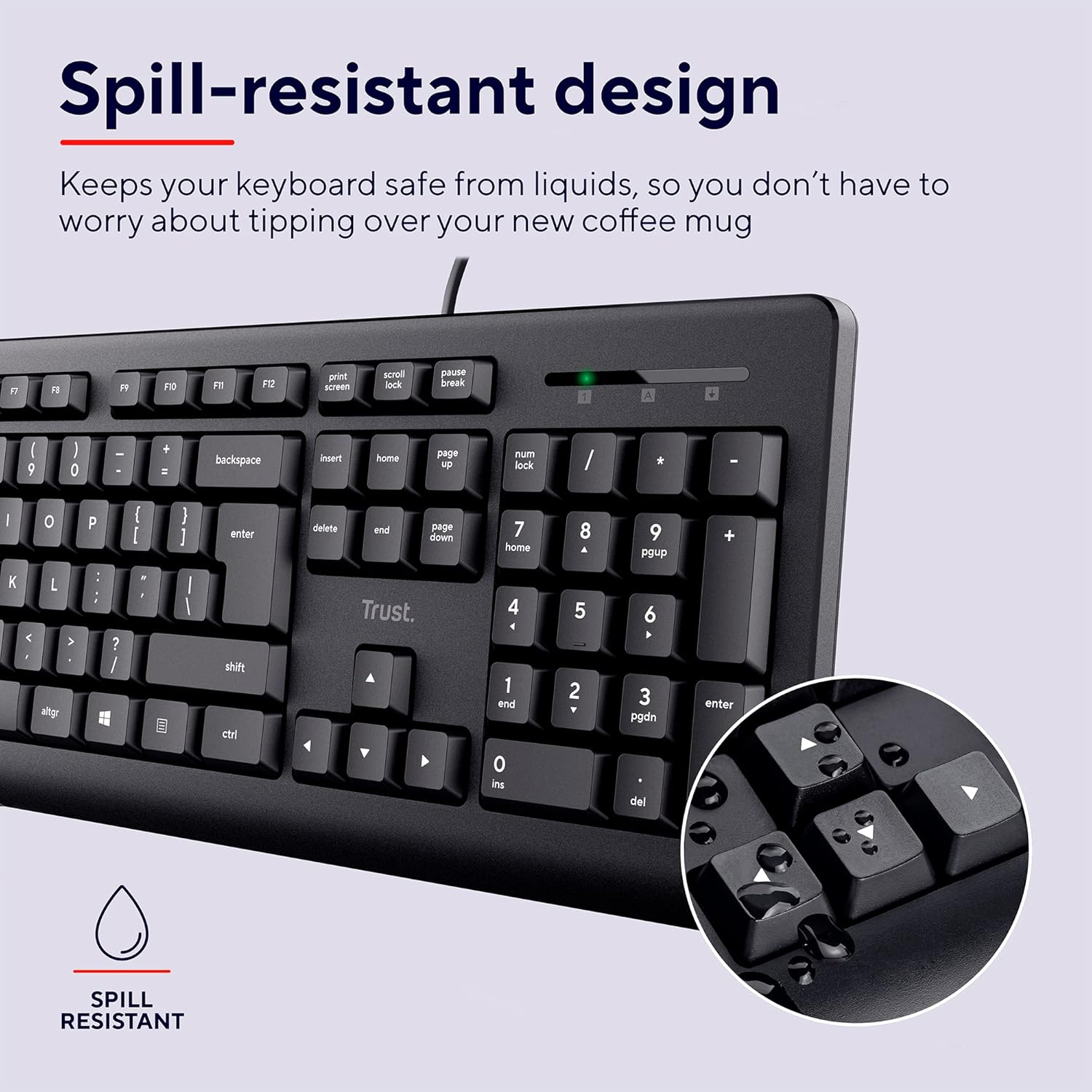 - Trust Taro Wired Keyboard and Mouse Set - Qwerty UK Layout, Full-Size Keyboard, Spill-Resistant, 1.8 m Cable, USB Plug and Play, Quiet Combo for PC and Laptop - Black