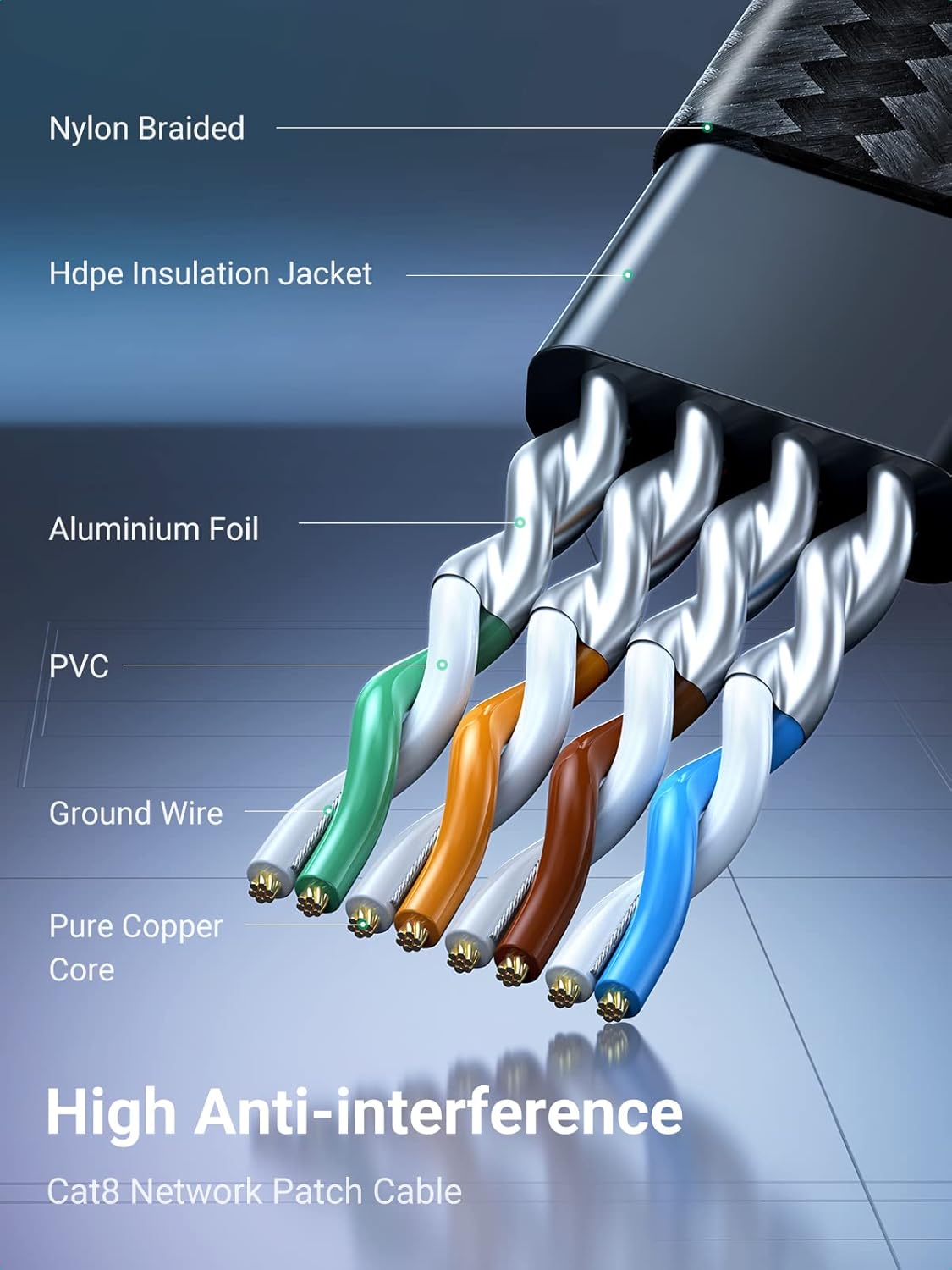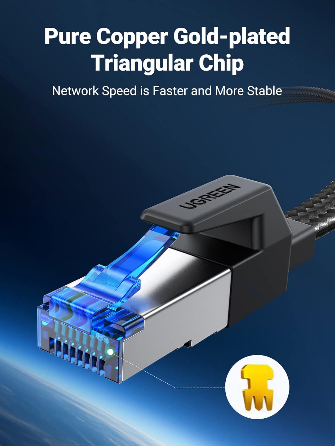 - UGREEN Ethernet Cable 5M, Cat 8 Internet Cable Flat High-Speed 40Gbps 2000Mhz Network Cable, Gigabit Braided RJ45 LAN Cable Patch Cord Compatible for PC/Laptop, PS5, Xbox, Modem, Router, Switch, TV