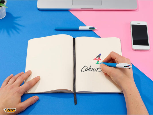 BIC 4 Colours Original Pens, Multi Coloured Pens All In One, Biro Pens, Medium 1.0mm, Green, Blue, Red, Black, 3 Pens Per Pack, 1 Pack