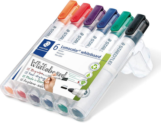 STAEDTLER 351 WP6 Lumocolor Whiteboard Marker Bullet Tip - Assorted Colours (Pack of 6)