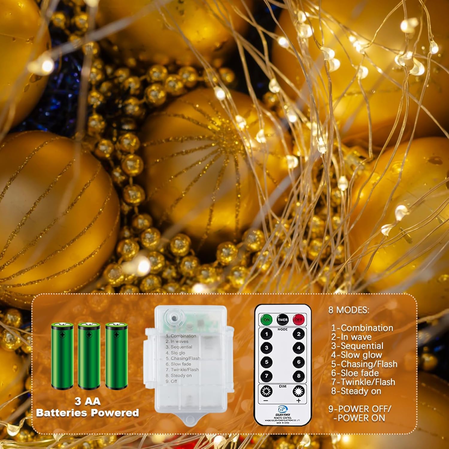- 【8 Lighting Modes】Our fairy lights with 8 Lighting modes: combination, waving, fireflies flashing, fading, chasing/flashing, slowly fading, twinkling/flashing, steady on. You can choose different lighting modes for different occasions to meet your various needs.