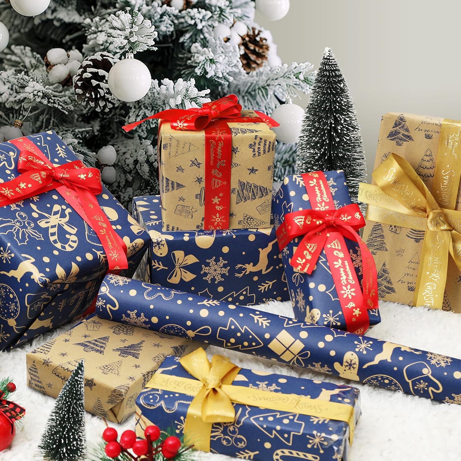 - 【Double-Sided Prints – Twice the Fun in One Roll】This double sided Christmas paper features two festive designs, Each side is printed with exquisite Christmas patterns - flexibly paired with ribbons or tag packaging to show more thoughtfulness and creativity, making your gift stand out from the crowd.