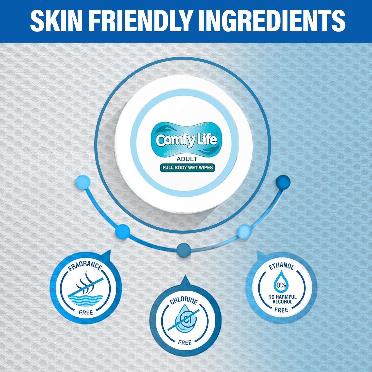 - BED BATH MADE EASY: Comfy Life’s premium wet wipes are ideal for bedside bathing when showers aren't accessible. Thick, strong, and infused with aloe vera, they provide a refreshing cleanse that helps maintain hygiene and comfort, perfect for incontinence care and daily freshness.