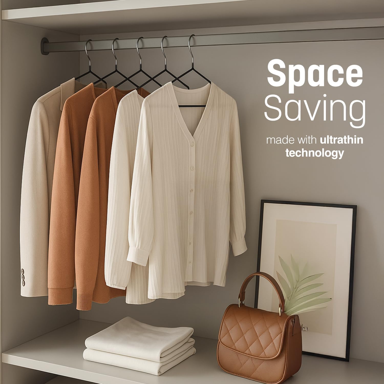 - Maximize your closet space with these space-saving hangers. With a thickness of only 4 cm, they take up minimal room while increasing the available storage space in your wardrobe. No more rummaging through piles of clothes – these hangers keep your garments organized, easily accessible, and free from creases.