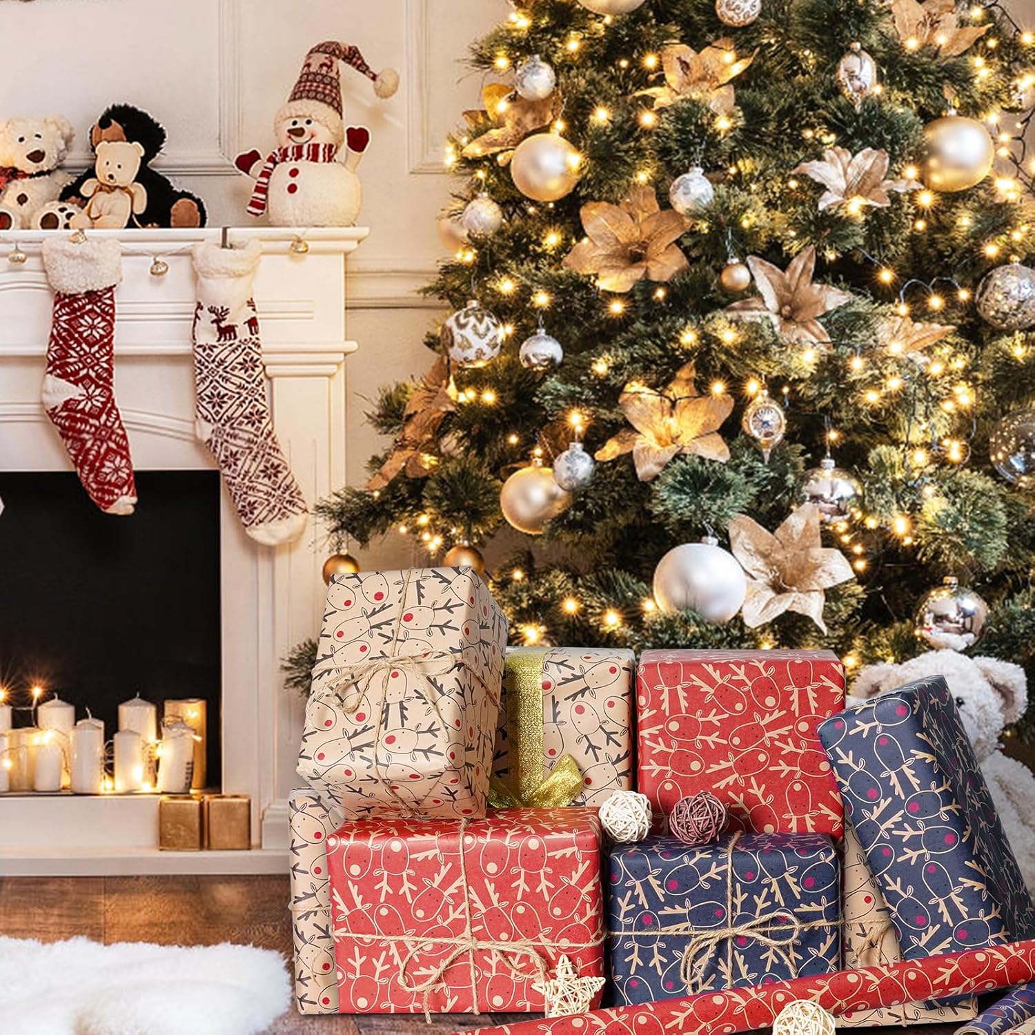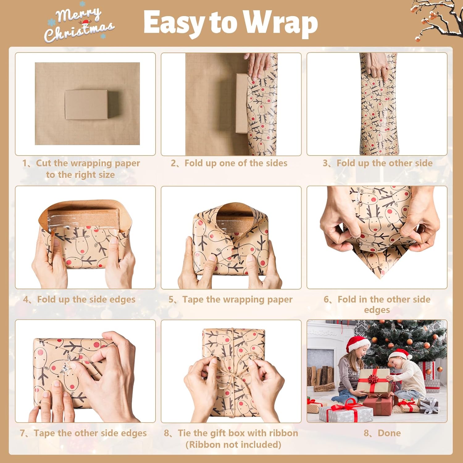- Kraft Paper & Recyclable: This packaging paper is made of quality kraft paper, sturdy and tear-resistant, not easily damaged. Also, it’s recyclable. Bright colors and beautiful elk design will be an eye-catcher at the Christmas party