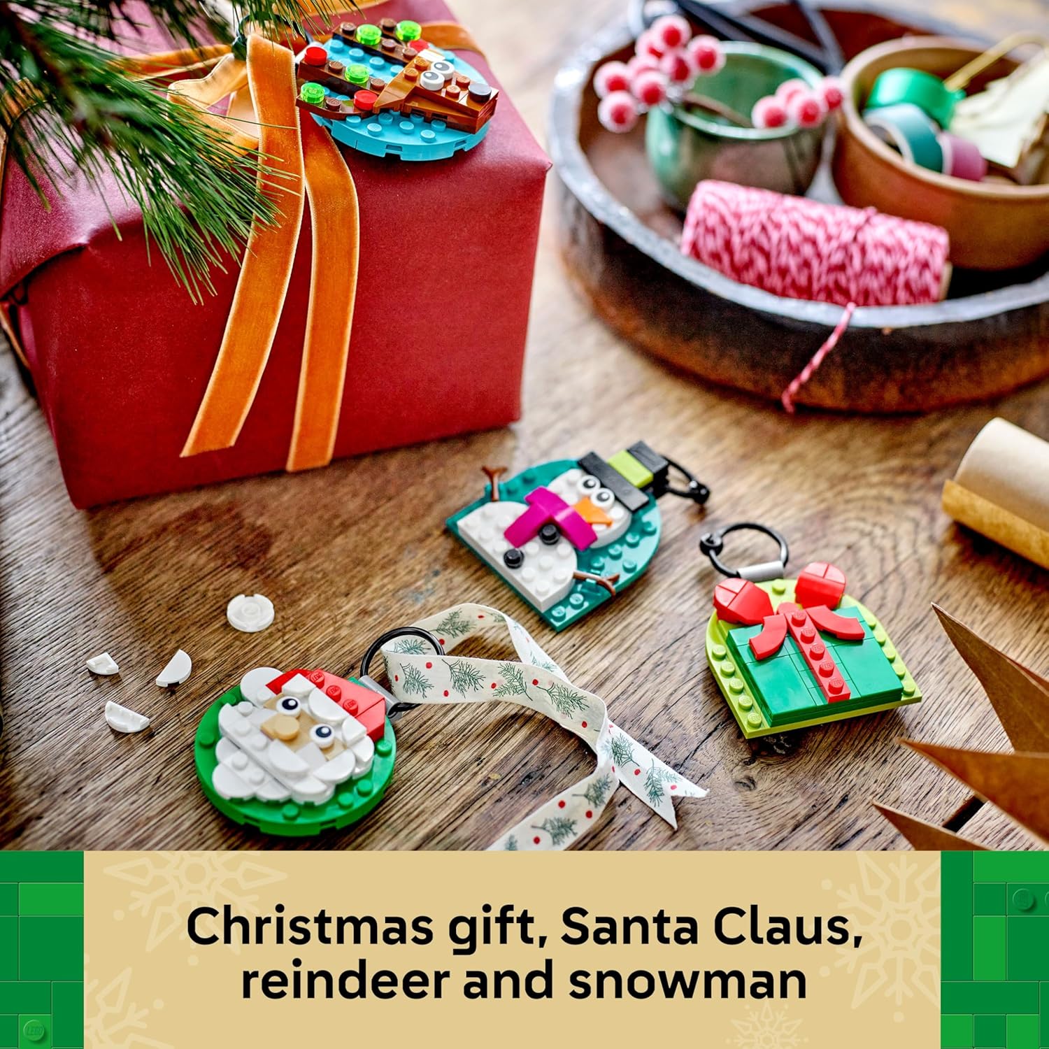 - LEGO CHRISTMAS DECOR – Build a Santa, reindeer, snowman and present tree ornament to create colourful, reusable Christmas decorations for home or desk decor