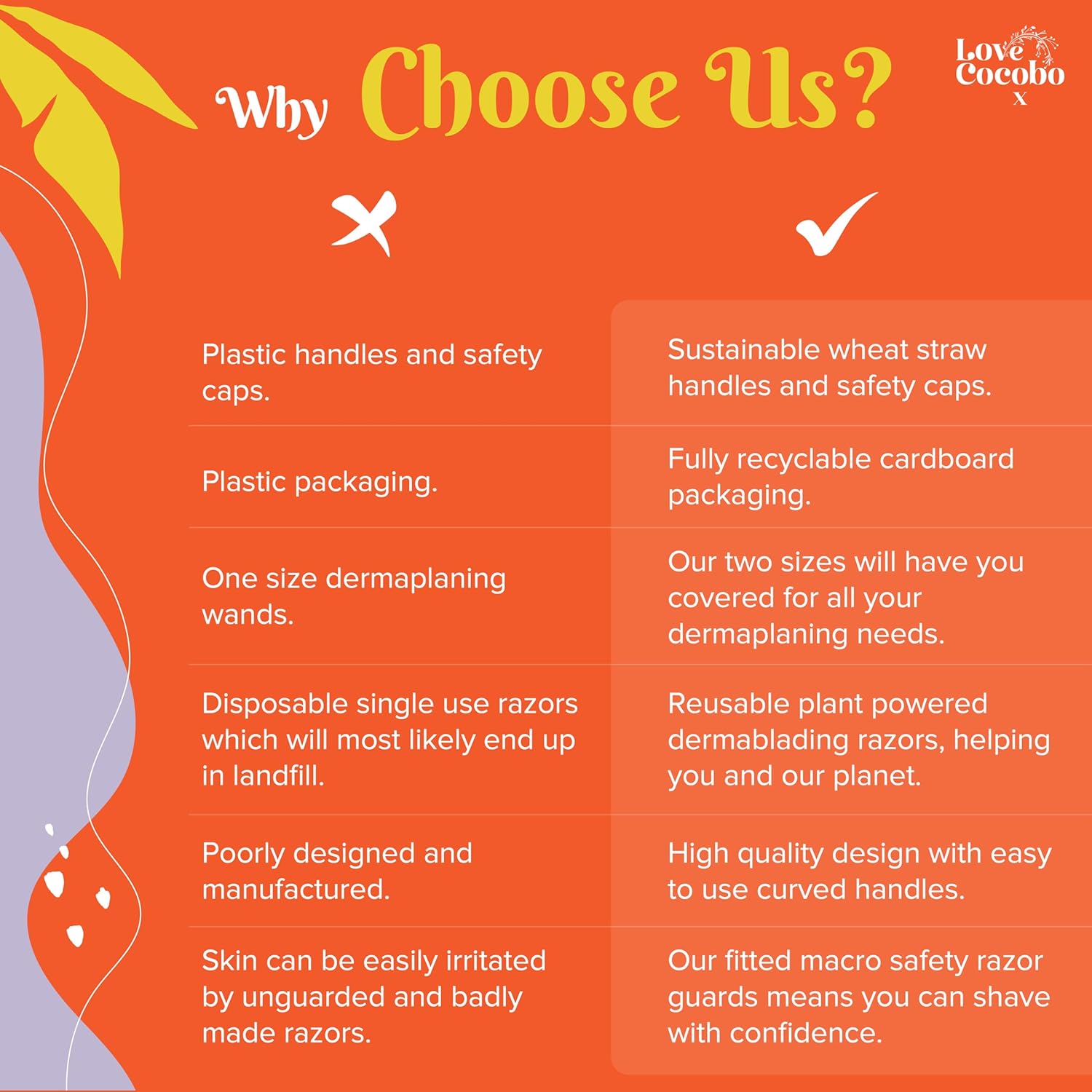 - Plastic Free And Biodegradable - Our zero waste dermaplaning razors are made from wheat straw which includes the safety caps. The packaging is also biodegradable and fully recyclable.