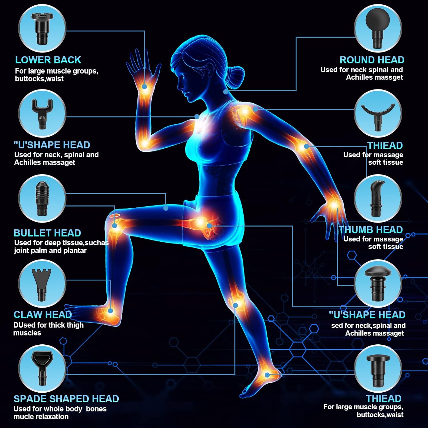 10 Interchangeable Heads: Designed for various parts of the body for a tailored massage experience.