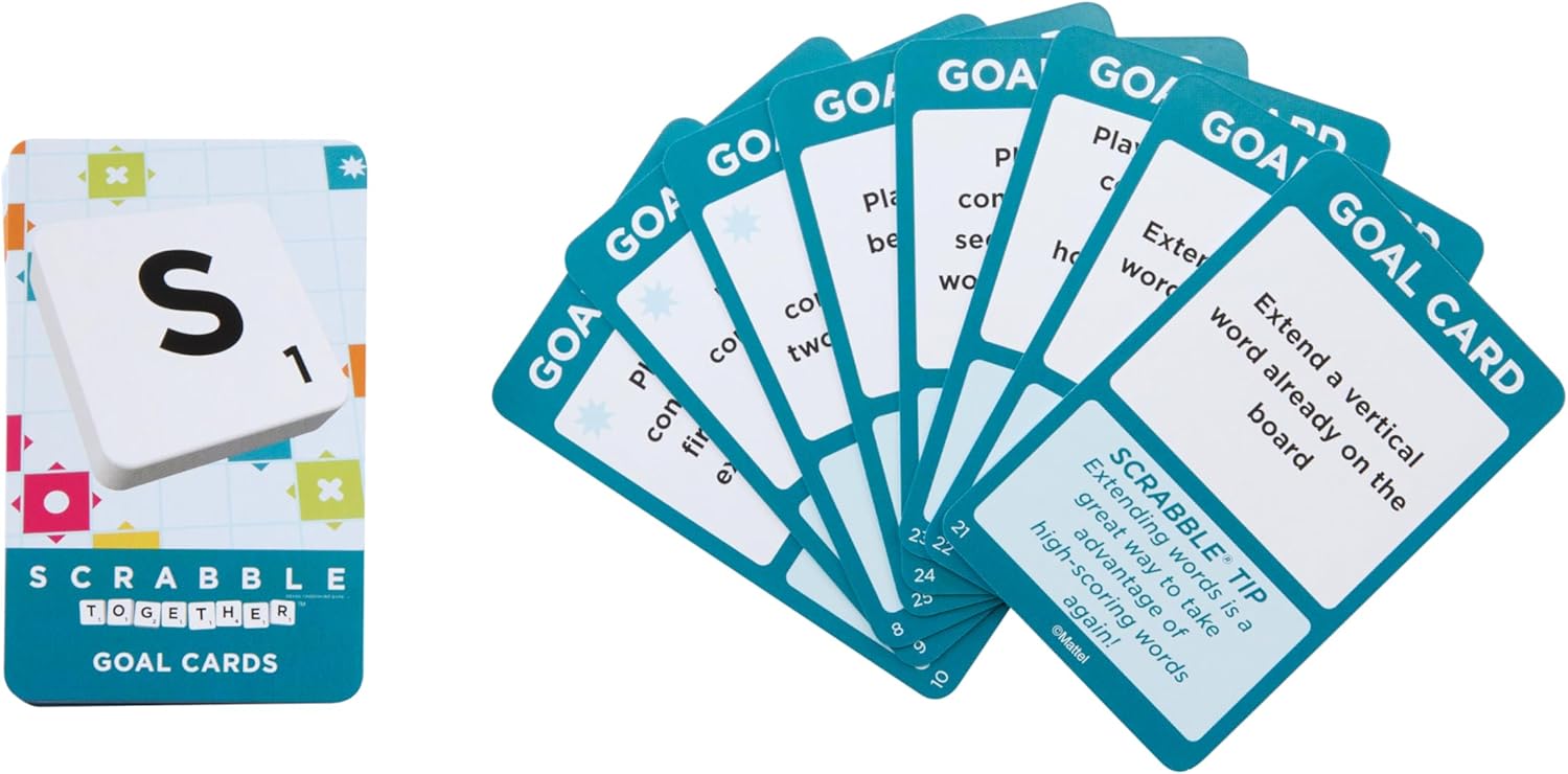 - In Scrabble Together, work as a team to complete as assortment of 50 Goal Cards that help teach Scrabble basics