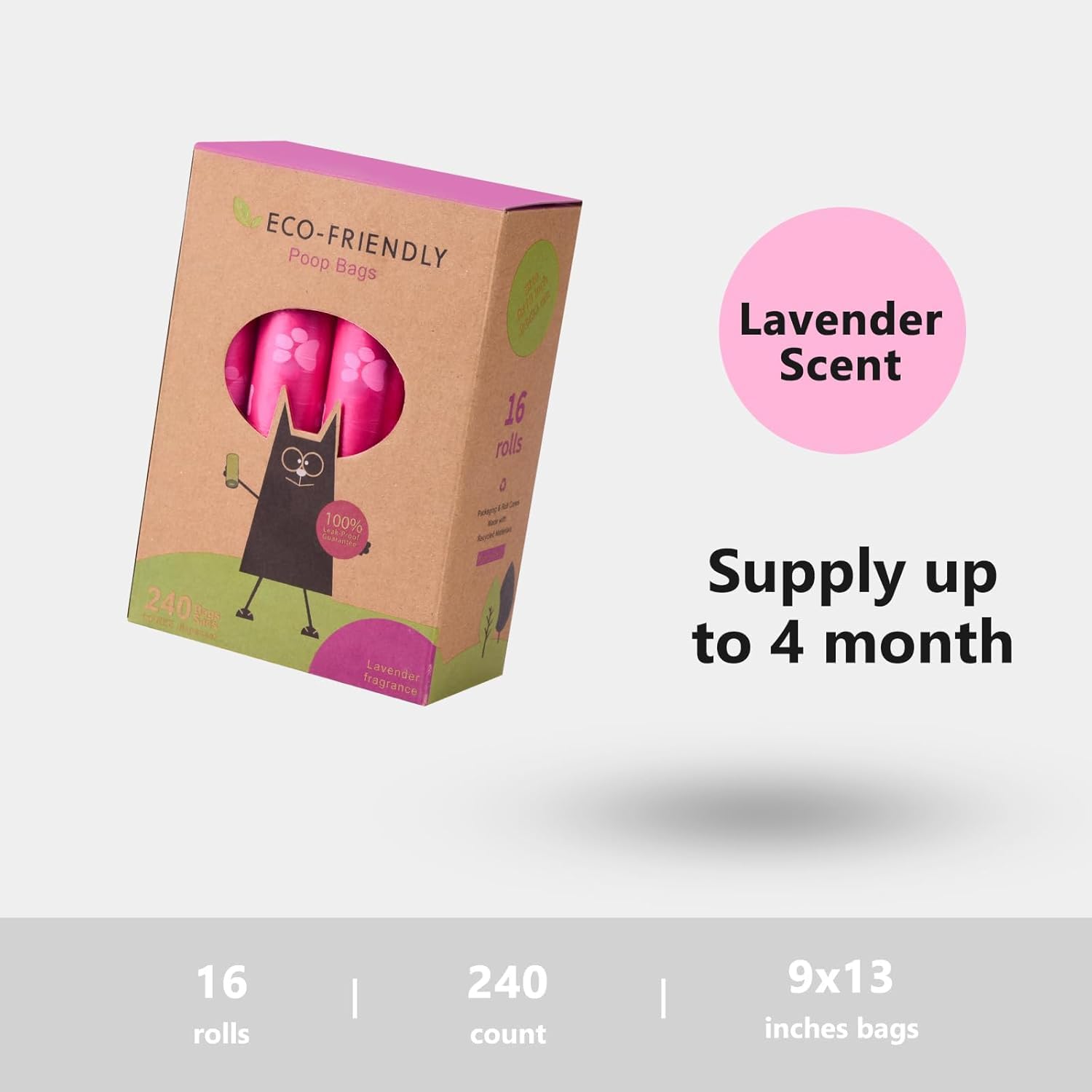 Nineaccy Biodegradable Dog Poo Bags with Holder-240 Large Poop Bags, Corn Starch Blended Compostable Poo Bag, Extra Thick Strong Leak Proof Poop Waste Bag for Dogs (Pink)