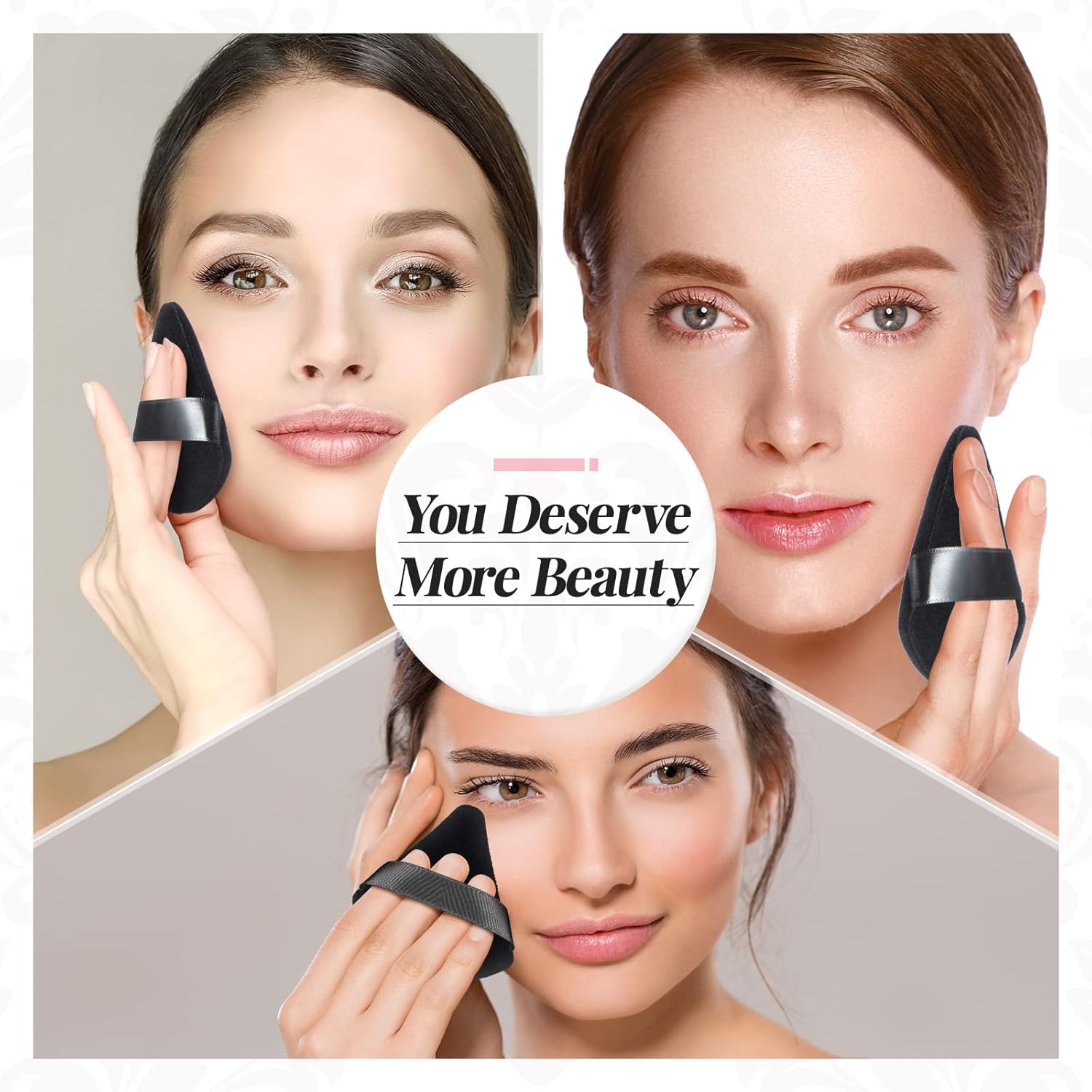 - Considerate Design: this makeup puff adopts triangle and cambered design, which allows you to use the round side to smear foundation on your cheeks and forehead, and use the triangle side to smooth uneven makeup around eyes and corners; Each face puff comes with a strap for grip easier