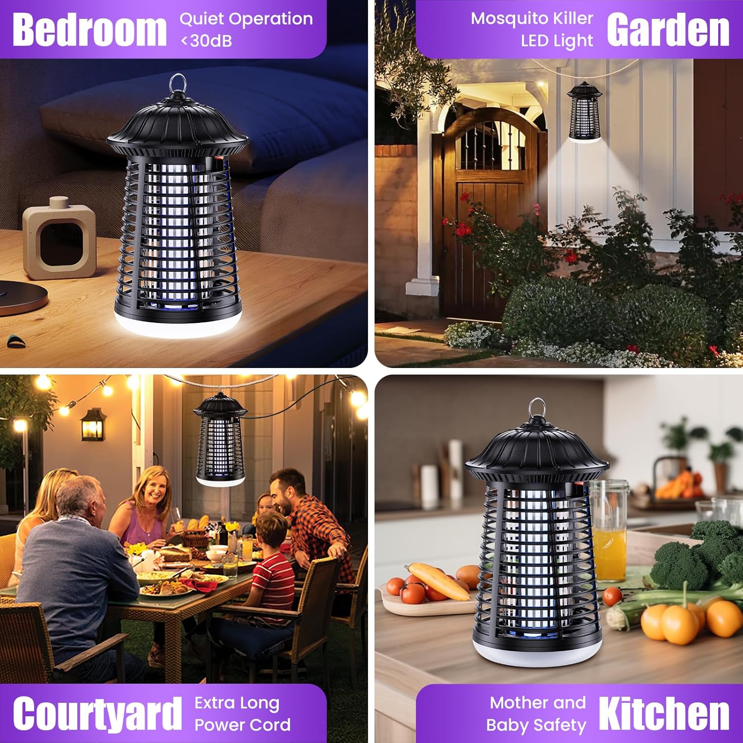 - 🌱【Safe and Waterproof, Wide Range of Scenarios】: Mosquito killer adopts IPX4 waterproof design, which can effectively prevent splashing water from invading. Whether it is placed in the bathroom, balcony or terrace, garden or courtyard, it can be used safely. The power cord of bug zapper is up to 3 meters long, which is convenient for you to adjust the placement according to actual needs. Note that the ideal hanging height of the mosquito killer lamp outdoors is 4 to 8 feet.