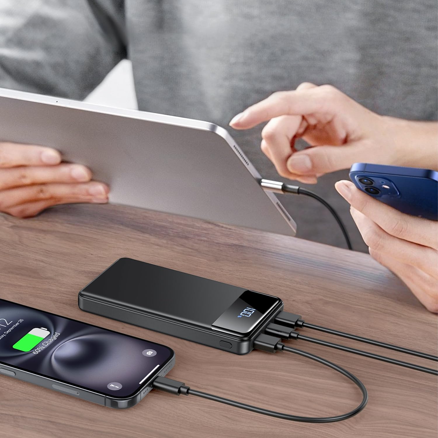 - 【Dual USB & Type-C Interface】 The power bank provides two USB-A outputs and one Type-C output, letting the portable charger serve up to three devices simultaneously. Compatible with iPhone 16/16 Plus/16 Pro/16 Pro Max, 15/15 Plus/15 Pro/15 Pro Max, 14, 13, 12, 11, Samsung Galaxy S25 Edge, S24, S23, Google Pixel, and more—perfect for sharing with family and friends.The Type-C input accepts 18 W PD fast charging, refilling the powerbank in roughly 3 hours with an 18 W PD adapter.