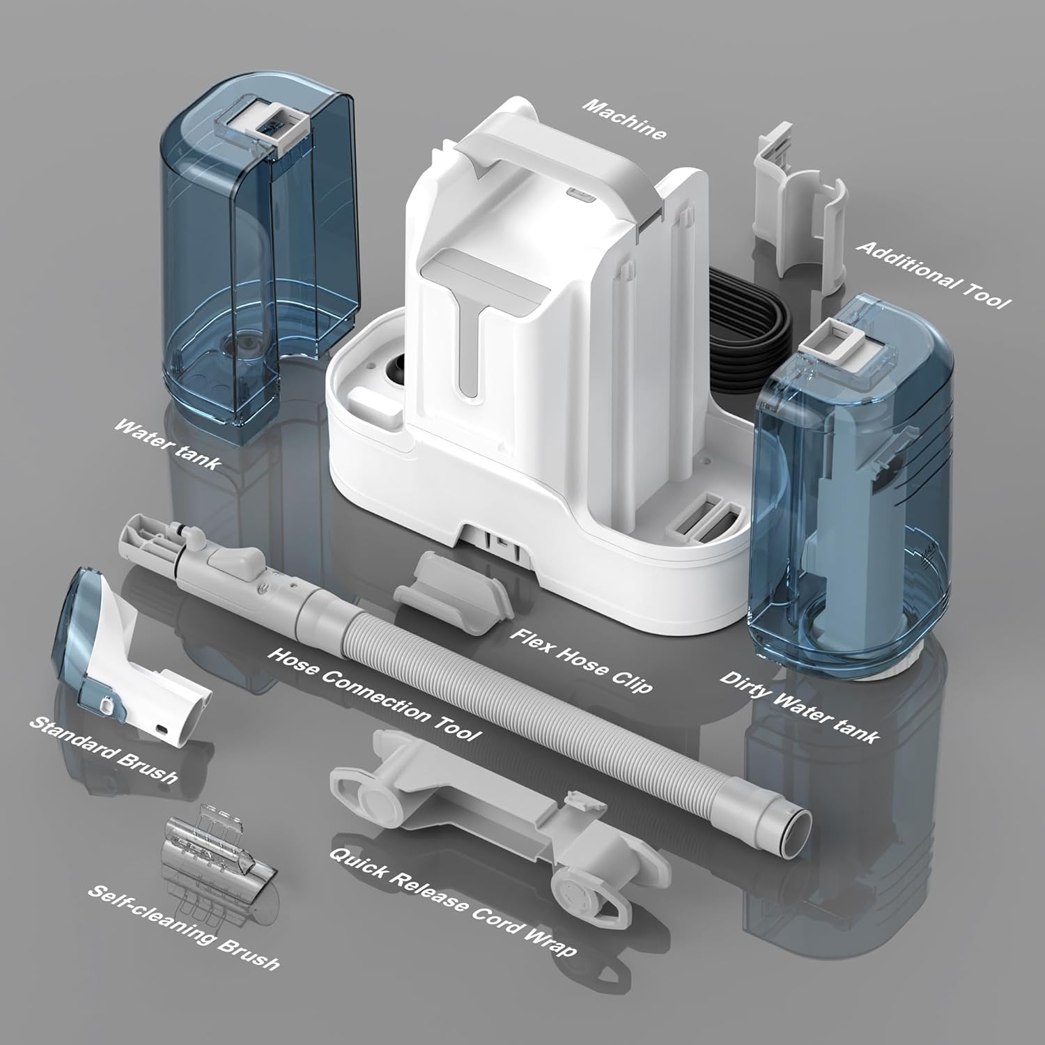 - Dual Water Tank: With a large 1800ml clean water tank and a 600ml dirty water tank, carpet cleaner keeps clean and dirty water separate, ensuring cleaning performance and easy maintenance.
